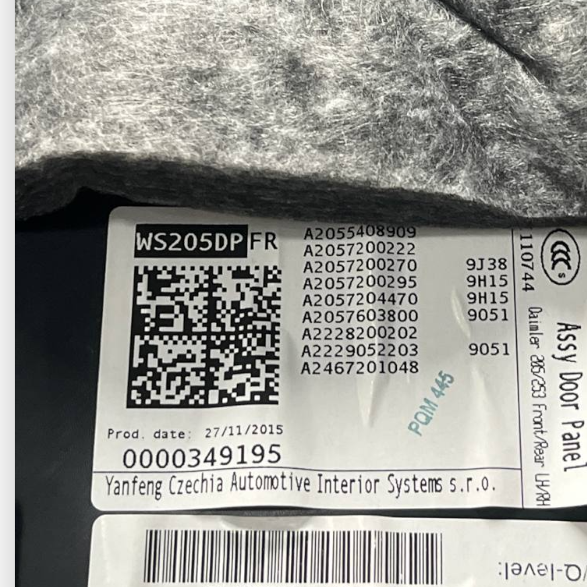 Панел на дясната входна врата (DX) Mercedes - Benz Class C W205 (2014 на 2021) COD: A2055408909