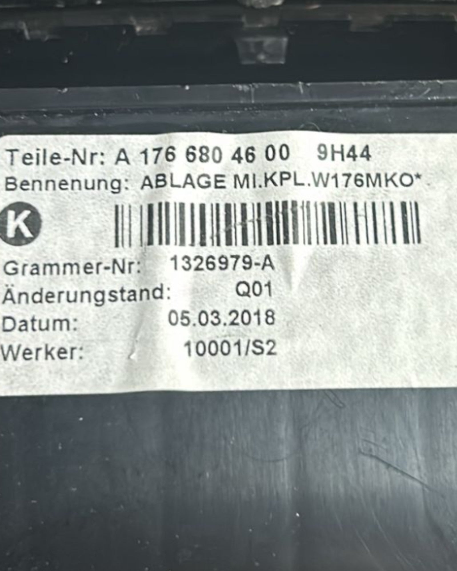 Vano -Tonobjekte zentrale Tunnel Mercedes Benz Klasse A (W176) COD.A1766804600 (2012> 2018)