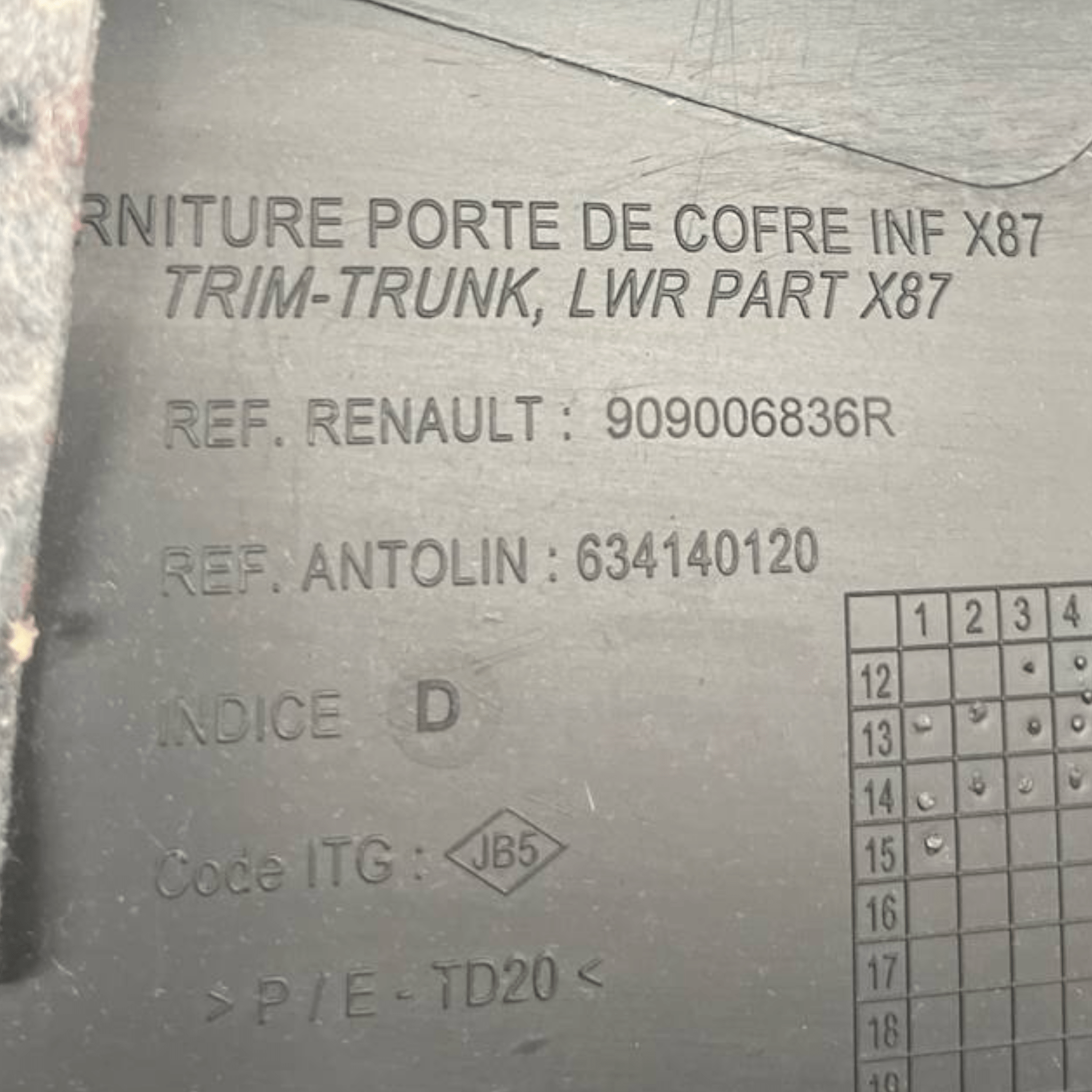 Interne vormgaat Renault Captur (2013 tot 2019) COD: 909006836R
