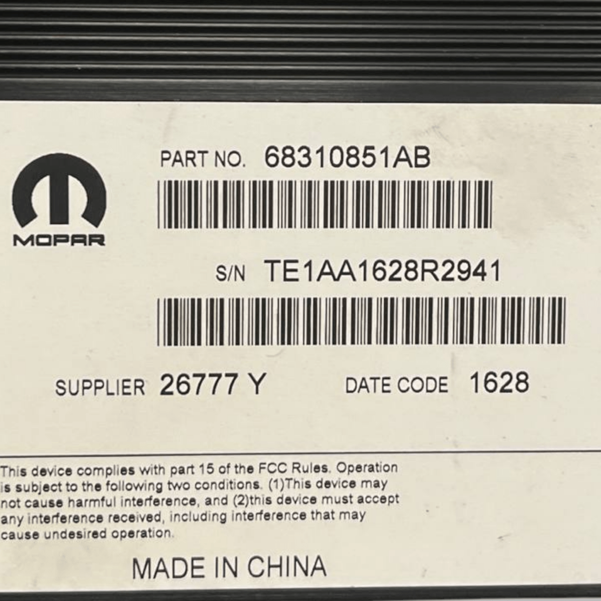Kontrolna enota avdio ojačevalnika jeep cherokee kl (2013 do 2023) koda: 68310851ab