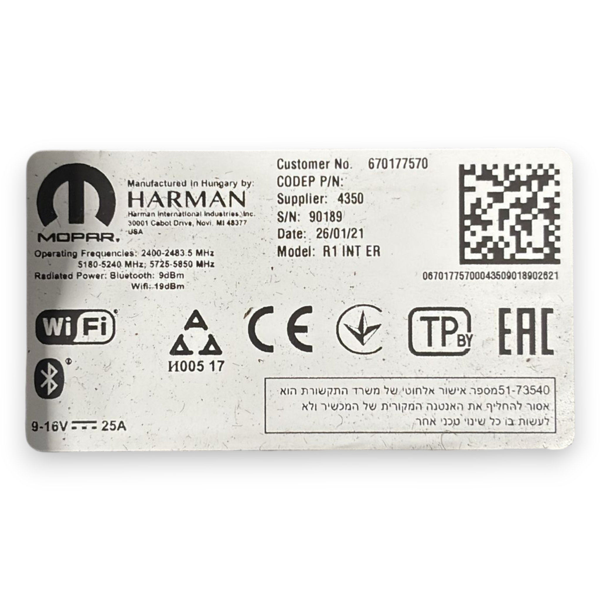 Centralna enota avtoradia maserati levante kod:670177570 (2016-)